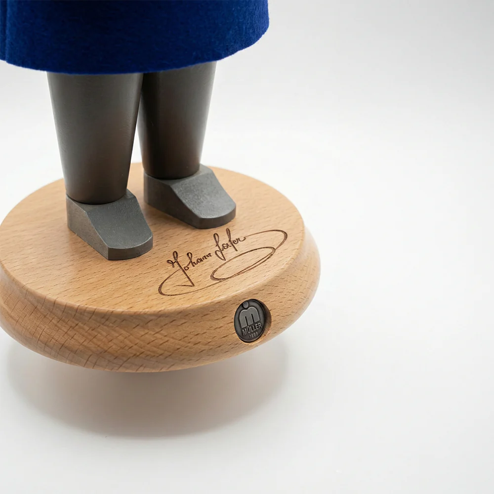 Der Räuchermann „Johann Lafer Edition“ ist eine Sonderedition mit original Signatur im Sockel. Die Figur wird in einer limitierten Auflage von der traditionsreichen Manufaktur Müller seit 1899 im Erzgebirge gefertigt - dort, wo Holzkunst und Handwerk zu Hause sind.